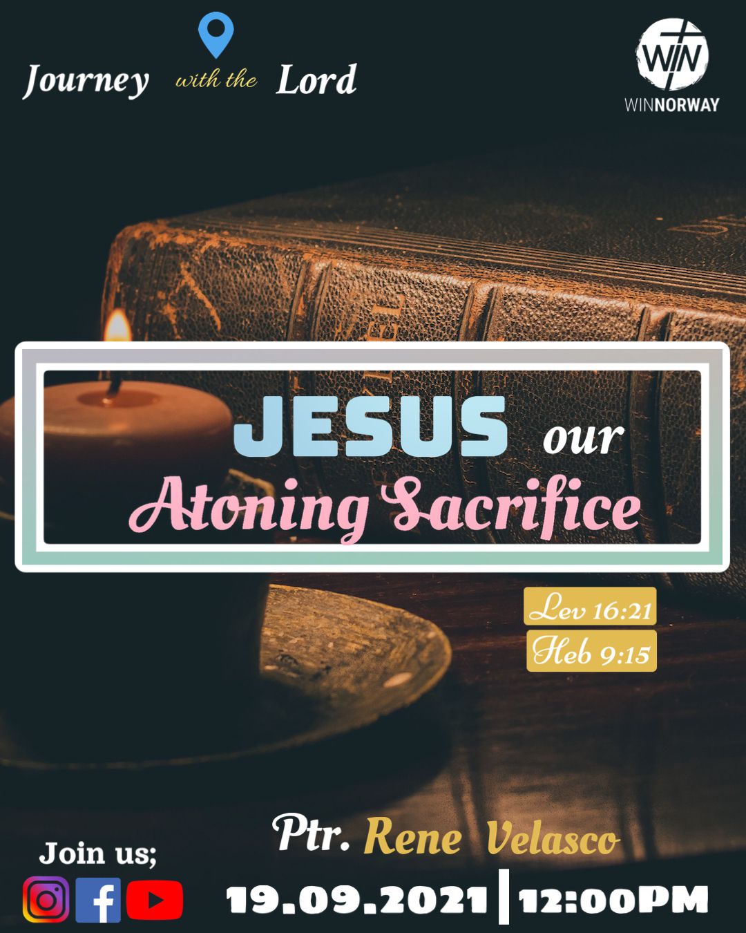 Sunday ServiceCome and join us this Sunday, 12PM at Madla Forsamlingshus & via zoom, as we continue our series this month with Ptr. Rene Velasco.See you!Zoom link:https://us02web.zoom.us/j/84647138848…MeetingID: 846 4713 8848passcode: 08082021+ Add to Google Calendar+ iCal / Outlook export DateSep 19 2021Expired! Time 12:00 pmShare this eventOther Events No event found!
